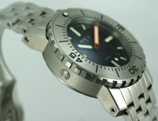 The A5 1000m features a 316L stainless steel case and bracelet, powered by an ETA 2824-2 25-jewel automatic movement. The sapphire crystal is double-domed and treated with anti-reflective coating on the inside. The hands and markers are coated with C3 SuperLuminova for superior visibility in low light. The A5 is water resistant to 1000 meters, and comes with a 1-year manufacturer’s warranty.